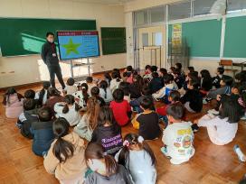各委員会が全校に伝えたいことを考えて、児童集会を行いました。5・6年生が協力して、クイズや劇を取り入れて創意工夫ある発表…