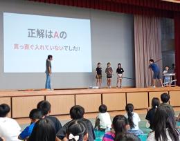 各委員会が全校に伝えたいことを考えて、児童集会を行いました。5・6年生が協力して、クイズや劇を取り入れて創意工夫ある発表… |  |