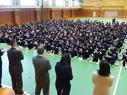 18日間の春休みを終えて登校をしてきた生徒は、明るい表情で久しぶりに出会う仲間と楽しそうに会話をしていました。始業式は、凛とした雰囲気の元、聴く姿勢もよく立派な態度でした。校長先生から今年1年頑張ることを学校、2,3年生と具体的に示していただき、生徒代表の3年生の田川君からは、合唱と生徒会活動を特に頑張りたいと決意が述べられました。始業式後には、学級担任と部活動顧問の発表がありました。