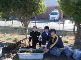 実務学級の生徒が児童館に花を植えました